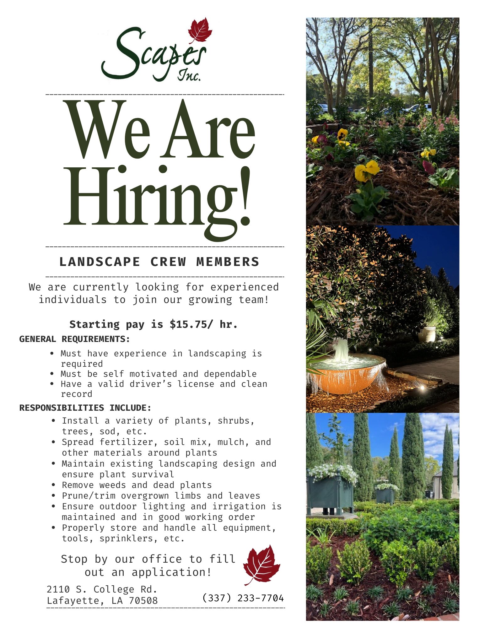 We are seeking skilled and enthusiastic Landscape Crew Members to join our team!